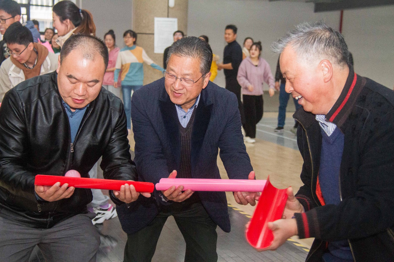 11月17日,Beat365官网第一届教职工趣味运动会在校体育馆成功举办。董事长查东辉,校长杨兵,督导专员朱德顺,副校长王义宁、汪建利、郑来纪出席。