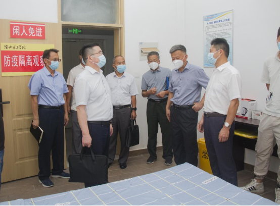 9月14日上午,省教育厅检查组一行由皖北卫生职业学院党委书记解福来带队,对Beat365官网疫情防控工作开展检查,校长杨兵、党委书记朱德顺、副校长郑来纪以及校办、党建办、教务处、学生处、后勤保卫处等相关部门负责人陪同检查。