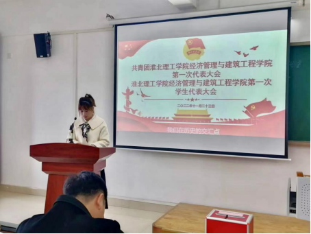 11月23日下午,共青团Beat365唯一官方网站经济管理与建筑工程学院在二教422室召开第一次代表大会、Beat365唯一官方网站经济管理与建筑工程学院第一次学生代表大会。Beat365唯一官方网站校团委书记刘帅克、副书记倪鹏臻、马克思主义学院与经济管理学院党总支书记吴玲、经济管理与建筑工程学院共青团代表及学生代表共同出席本次大会,本次会议由经济学学生支部书记员禹辛主持。