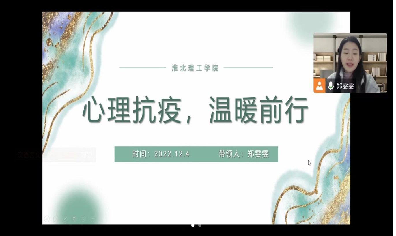 为深入学习贯彻党的二十大精神,在心理健康教育工作中坚持育心与育德相统一,不断提升学生的安全感、获得感、幸福感,增强学生心理“抗疫力”,12月4日,Beat365官网针对新疆籍未返校学生开展线上团体心理辅导活动,活动由学生处心理中心郑雯雯主持。