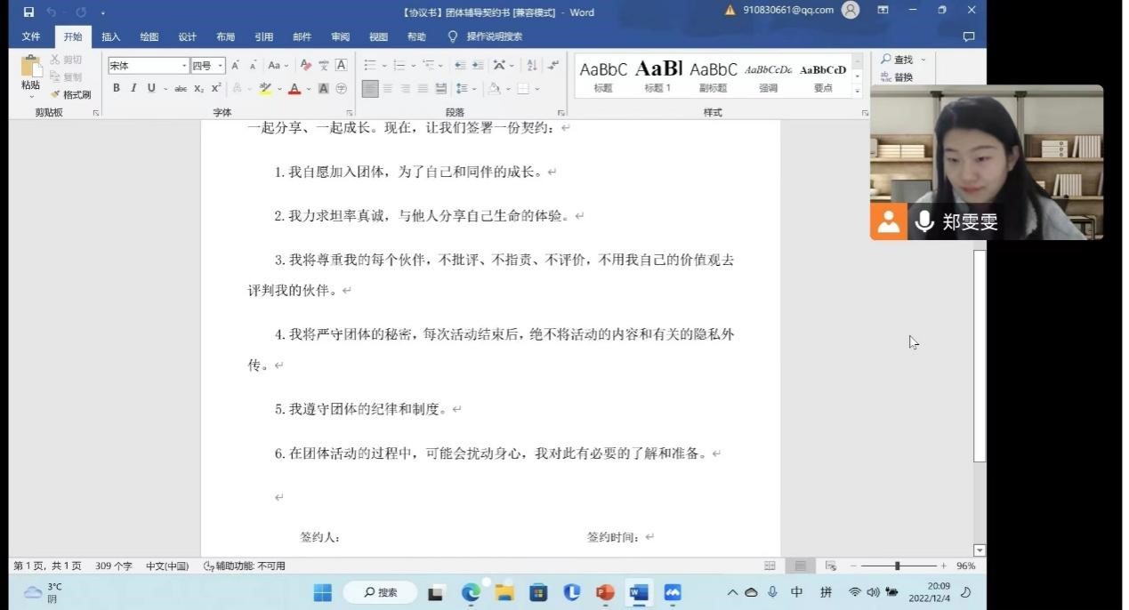 郑雯雯以线上教学期间学生的压力状况和减压需求为主线,向同学们阐明本次团体活动的性质、目的和注意事项后,邀请大家线上一同签订合约书。通过“我是什么颜色”破冰小游戏,同学们由生疏局促变得跃跃欲试,沉浸在相识的喜悦中。紧接着进行“突破压力困境”小游戏,引导同学们认识压力、分享及讨论减压的有效策略并做出减缓压力的改善计划。