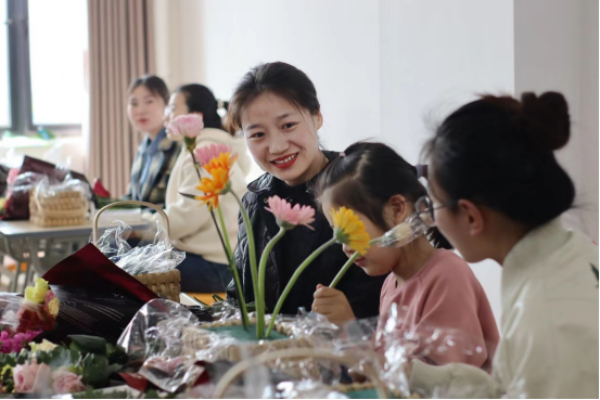 全校超90%女教职工积极参与了“春天的花很鲜艳 淮理的你很特别”花艺沙龙DIY插花活动。活动现场欢声笑语、花香弥漫,所有女职工们聚集在一起,共同庆祝这个属于自己的节日。活动开始前,女职工委员会主任陈志操向全院女职工们致以节日的问候,希望广大女职工们发扬勇于担当、敢于拼搏、奋发有为的精神,展现蓬勃向上的新时代女性风采,继续为淮理发展贡献“半边天”力量,成为推动淮理高质量发展的重要生力军。