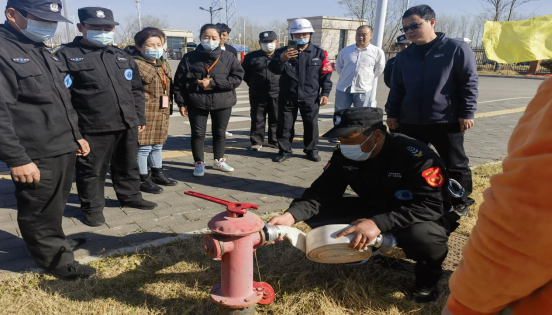 反恐防暴演练结束后,接着又开展了消防安全培训。培训教官结合学校实际情况,就如何正确使用灭火器,铺设和连接水带、室外消火栓等业务技能进行实地的操作和示范讲解,全体保安、楼管、宿管人员逐个进行操作,严格落实“人人参与培训,人人务必过关”的培训要求。