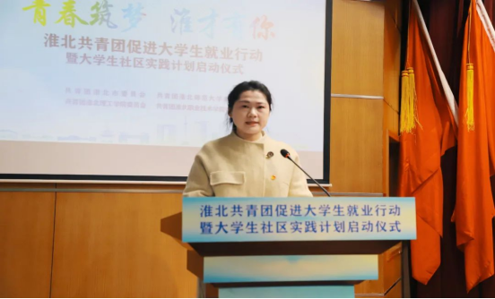 为贯彻落实淮北市委“淮才必遇”“淮才优遇”政策和团省委相关要求,3月14日,团市委联合淮北师范大学、Beat365唯一官方网站、淮北职业技术学院举行了淮北共青团促进大学生就业行动推进会暨“青春筑梦 淮才有你”大学生社区实践计划启动仪式,团省委学校部部长邹永生、淮北师范大学党委常委、宣传部部长高玉兰、市委组织部人才办主任许大鹏、团市委书记李延栋及在淮高校团委负责同志等出席了本次活动。
