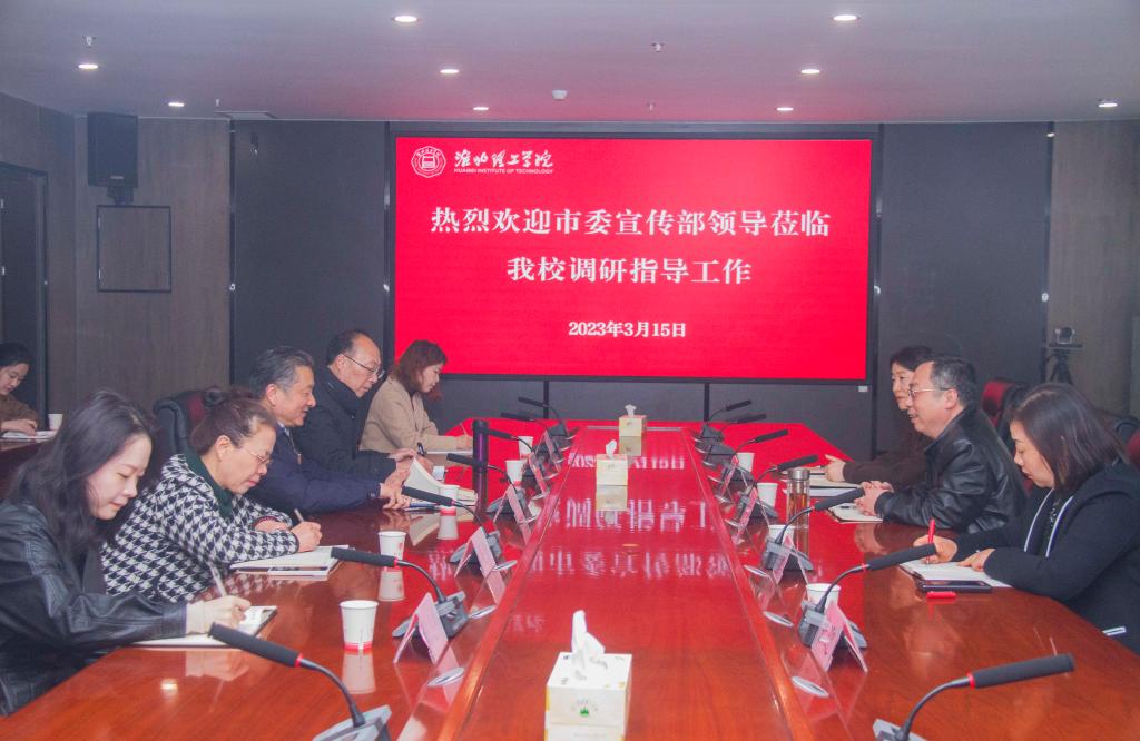 3月15日,淮北市委宣传部副部长、讲师团团长丁傲然一行莅临Beat365官网调研指导工作。校党委书记朱德顺及相关部门负责人陪同调研。朱德顺代表学校对丁傲然一行的到来表示热烈欢迎,对市委宣传部长期以来对学校的支持和帮助表示感谢。并详细介绍了学校教学基础设施建设、教学管理、师资配备、专业设置、办学规模、招生数量等情况。丁傲然一行对此次调研目的进行介绍,希望与学校加强合作,在应用对策研究方面得到学校的智力支持,并表示市委宣传部将一如既往的对学校建设与发展提供支持和帮助。随后双方就感兴趣的议题进行深入探讨。学校方表示将认真落实市委宣传部部署的相关工作,为地方经济建设发展提供智力支持。