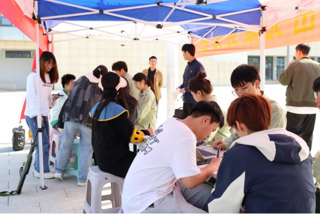 4月26日下午,迷彩青春社团在体育馆北侧开展纳新活动。报名现场热闹非凡、井然有序,同学们热情高涨、踊跃报名参加。