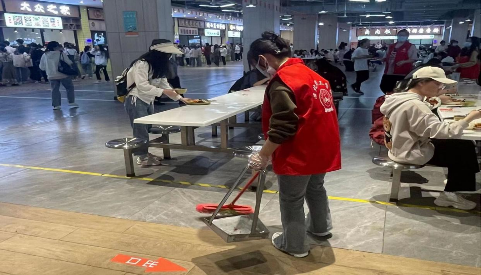 5月9日,开展“我为同学做件事”劳动教育主题活动。志愿者们统一佩戴袖章和口罩,在学校食堂各司其职,维护就餐秩序、卫生清洁等,积极热情地为大家服务。志愿者们在体验劳动快乐的同时,也给同学们创造了一个更加良好的用餐环境。