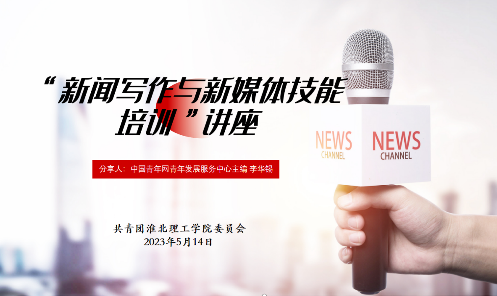 5月14日,为培养各部门学生骨干的新闻写作能力,促进学生全方面发展,校团委在一教121教室举办“新闻写作与新媒体技能培训”讲座,中国青年网青年发展服务中心主编李华锡为学校师生分享新闻写作经验。校团委书记刘帅克、各二级学院团总支书记、辅导员代表,校学生会、学社联及各二级学院学生会100余人参加了培训。