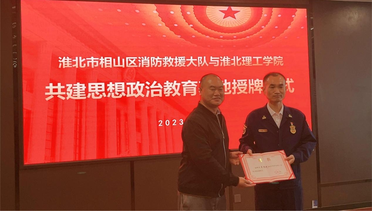 相山区救援大队来校进行共建授牌活动标志着双方合作共建工作的进一步加深。希望双方以平台为抓手,将党建引领促发展、合力共建聚人心落到实处,充分调动全社会的力量和资源,建设好“大思政课堂”,通过设立一批不同类型的实践教学基地,推出优质教学资源,做优品牌示范活动,推动思政小课堂与社会大课堂的有机结合。