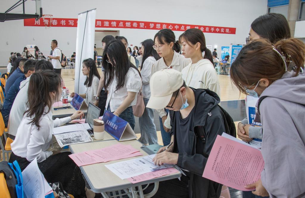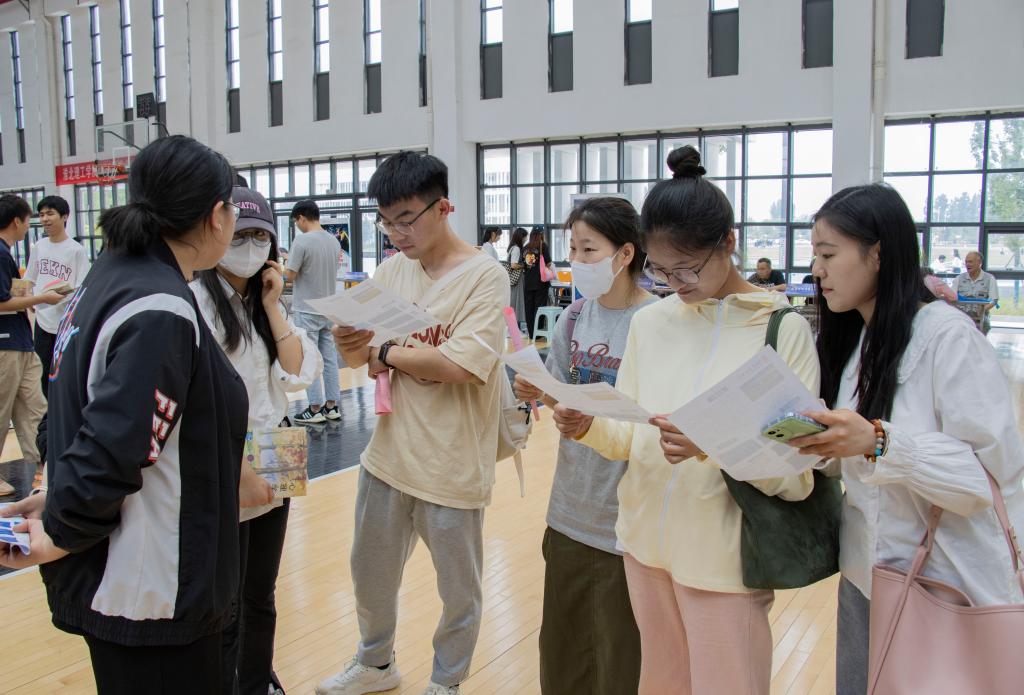 现场人潮涌动,企业展位前咨询、面试的毕业生络绎不绝。同学们就岗位需求、工作性质、发展前景等方面与用人单位进行详细交流,以实现用人单位与毕业生有效对接。据统计,全校有900余名学生参加招聘会,投递简历1200余份。