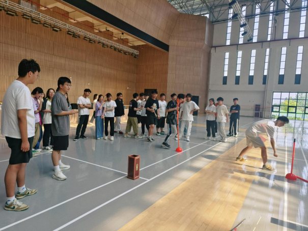 活动初始,参赛学生6人一组、分成十组,并讲解活动规则。随后,开始第一项活动——趣味投壶。让各组员先转圈后进行投壶并交替进行,用时最短的小组获胜。本项活动培养了大学生团结合作精神,提高了大学生的心理素质。