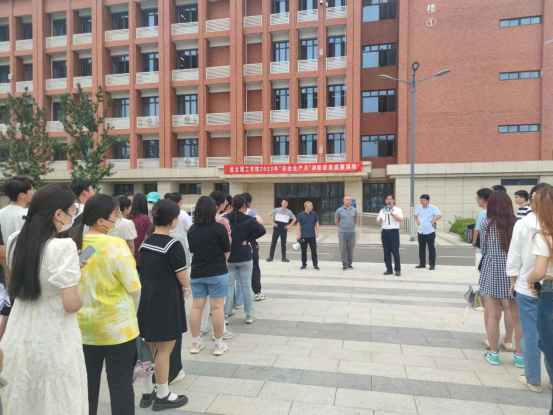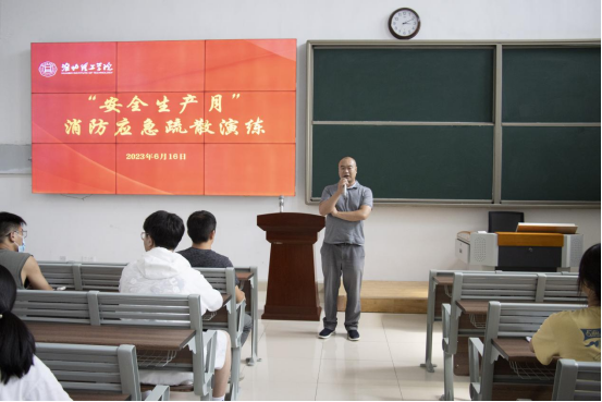 6月16日下午,Beat365官网在教一121教室举行消防应急疏散演练,学校副校长郑来纪、后勤保卫处、学生处等部门负责人、各二级学院书记助理及师生代表约200人参加演练。