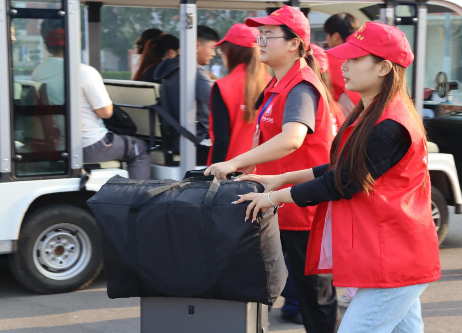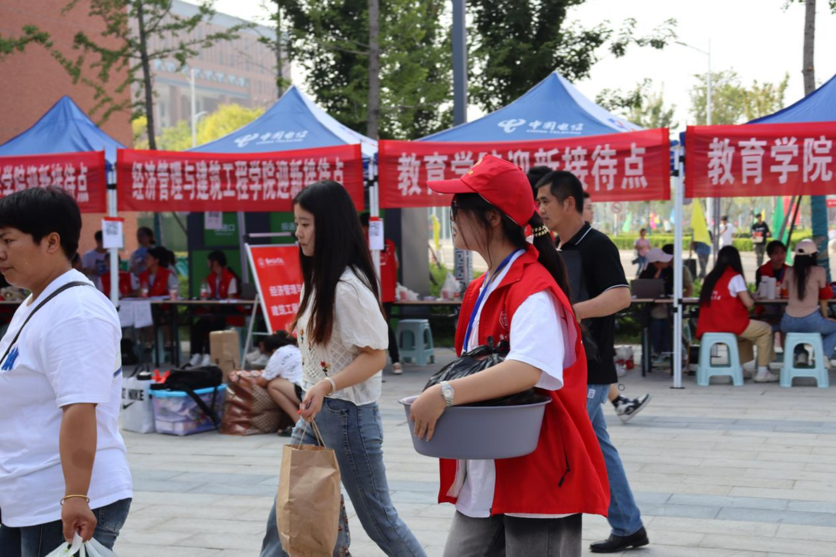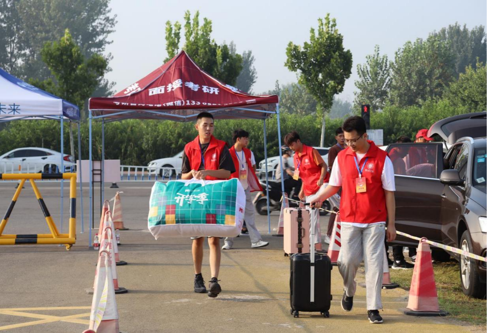 迎新工作中,学生志愿者保持着一贯的严要求,高标准,引导新生有序办理报到手续、指引道路、搬运行李等,并及时为新生及家长解答疑惑,提供细致周到的入学服务,提高了迎新工作的服务质量和效率。