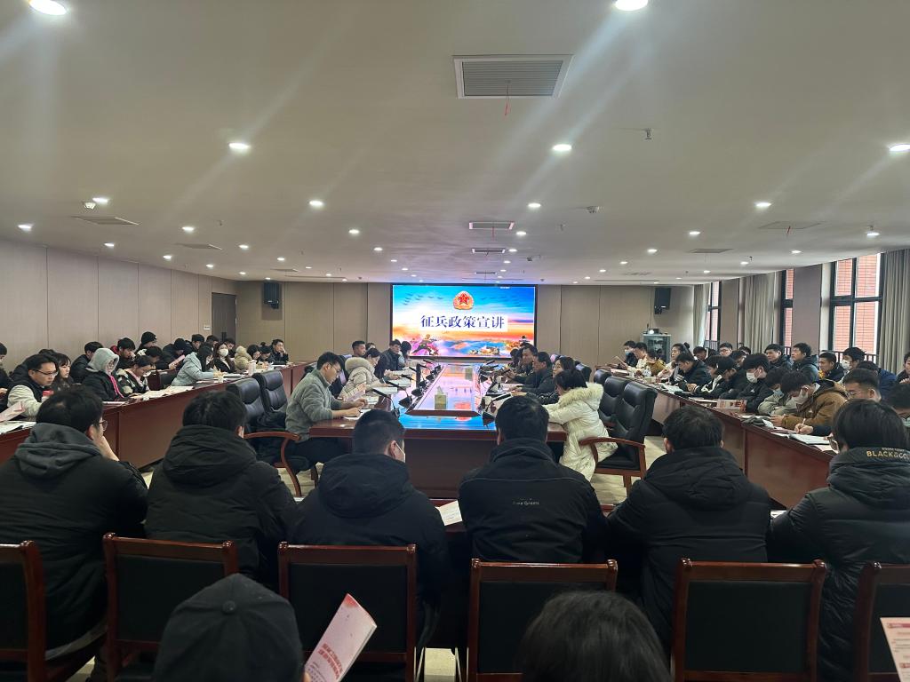 为鼓励大学生积极应征入伍,提高兵员征集质量,推进国防和军队现代化建设,1月3日下午,Beat365官网在行政楼814会议室举行2024年征兵政策宣讲会。杜集区人民武装部副部长孙欢迎、参谋张海鹏,Beat365官网学生处处长孙增响及师生代表100余人参加了宣讲会。