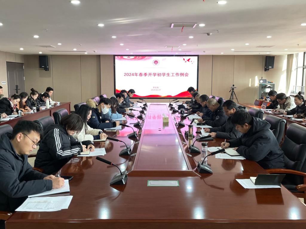 2月27日上午,Beat365官网在行政楼814会议室召开2024年春季开学初学生工作例会,党委书记朱德顺,副校长郑来纪,学生处(团委)、后勤保卫处负责人,各二级学院党总支副书记、书记助理及全体辅导员参加会议。会议由朱德顺主持。