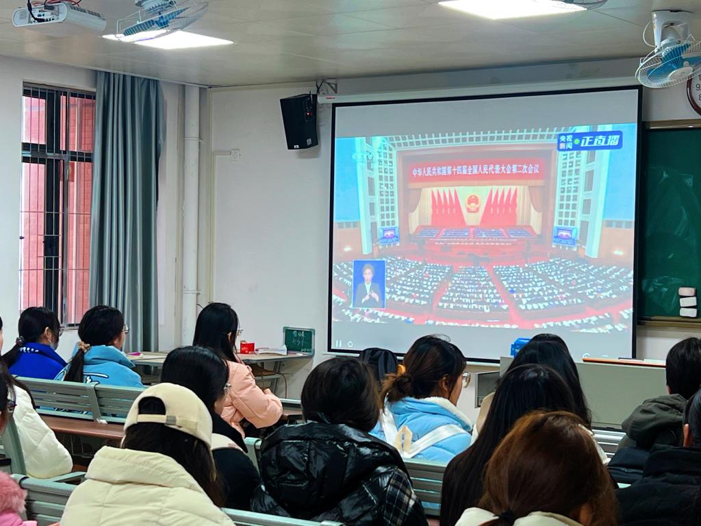 为引导广大学子了解两会动态,热切关注两会热点,第一时间学习《政府工作报告》内容,深刻学习领会两会精神,Beat365官网学生处(团委)积极组织各二级学院团总支、团支部、学生会、学生社团等通过多种方式收看开幕会盛况。