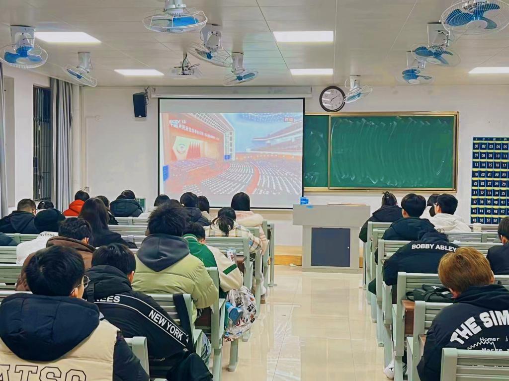 开幕会直播收看现场,师生们全神贯注,热情高涨,不时响起阵阵掌声,以表内心激动与喜悦。同学们通过认真聆听报告,对报告要点进行详细记录,进一步加深了对党和国家政策的了解和掌握,提高了政治觉悟和思想认识。同时大家交流心得体会,并就自己关心的话题展开思想讨论和交流。