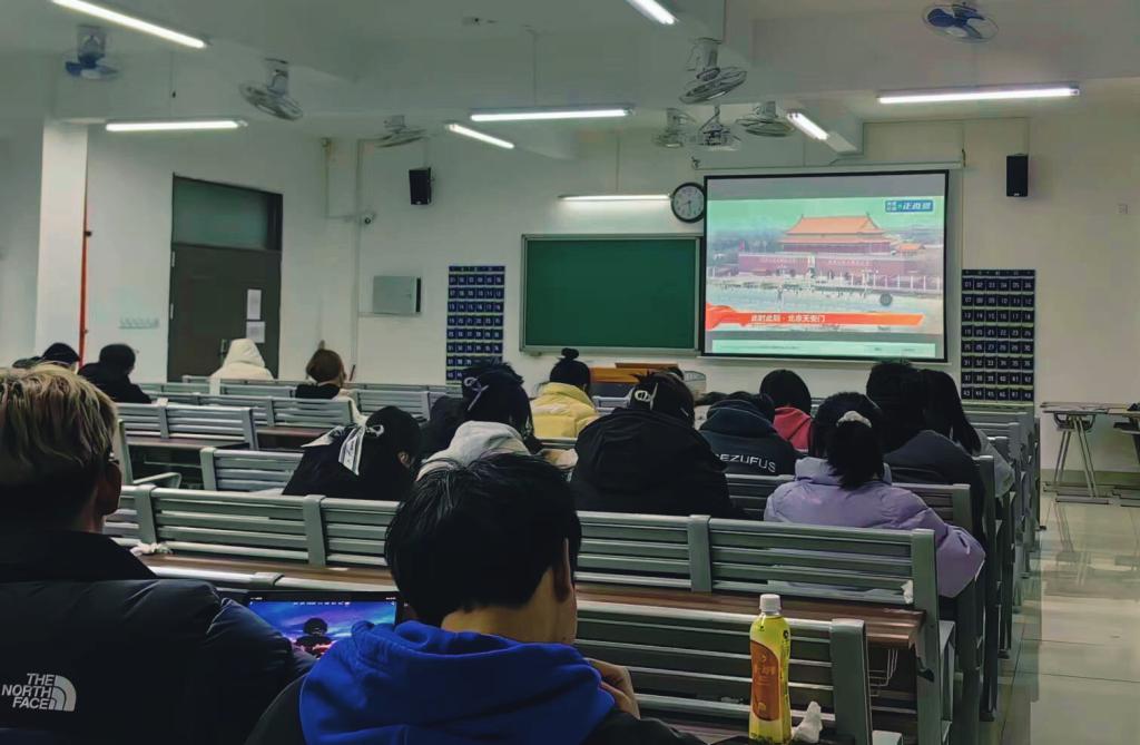 经济与管理学院学生在教室集中观看开幕式