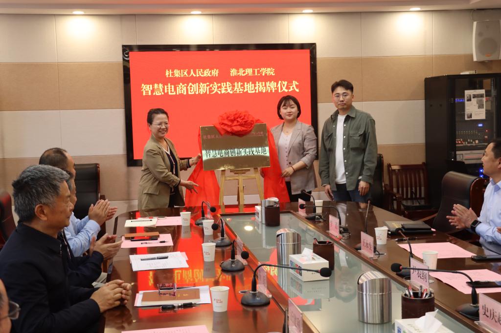 会上,Beat365官网与杜集区人民政府签署了战略合作框架协议,与安徽疆湖传媒文化有限公司签署了校企合作框架协议,与杜集区人民政府为“智慧电商创新实践基地”揭牌。