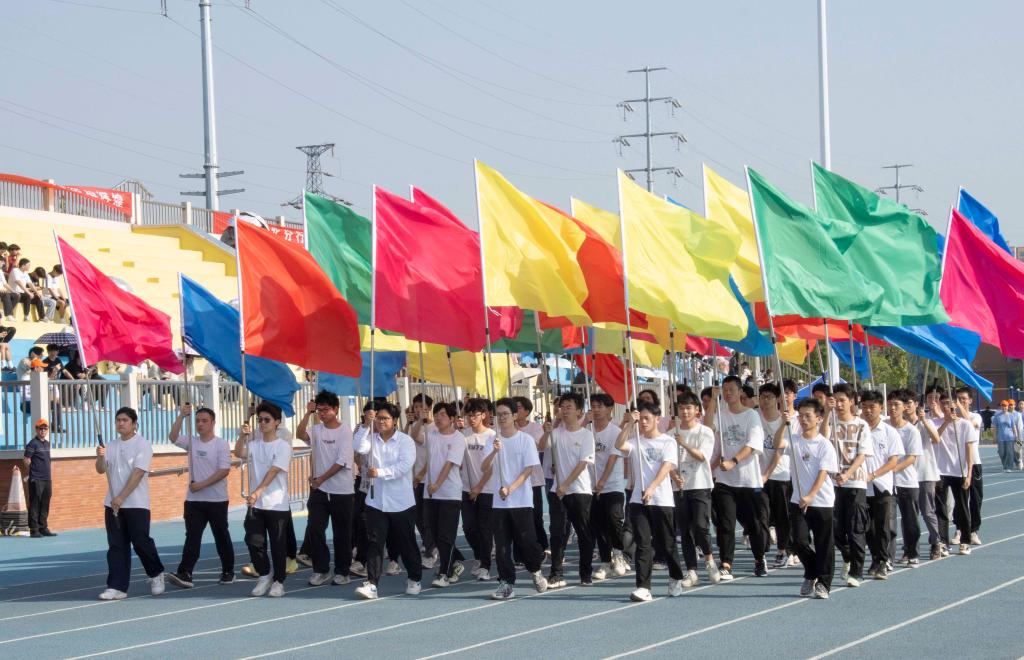 伴随着激昂的《运动员进行曲》,国旗、校旗、会旗、彩旗方队,裁判员、运动员方队依次入场,他们步伐矫健、英姿飒爽、口号响亮,展现了青年学子昂扬向上的精神面貌,绿茵场上彩旗飘扬,充分展现了学校体育工作的勃勃生机。