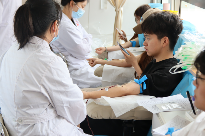 活动现场,学校师生有序排队,填写献血登记表、测量血压、抽血化验,他们撸起袖子、伸出胳膊、排队采血,让充满爱心的热血缓缓地流进一个个储血袋。献血过程中,医护人员耐心细致地为每位献血者提供指导和服务,向献血者介绍献血的重要性和注意事项,确保献血过程的安全和顺利。