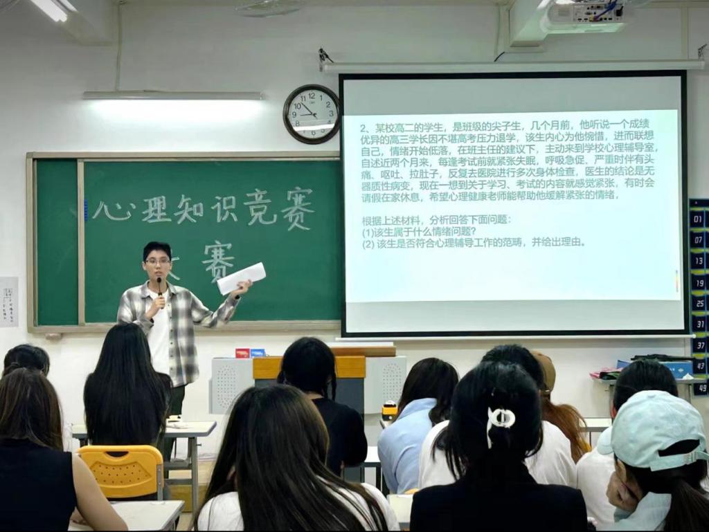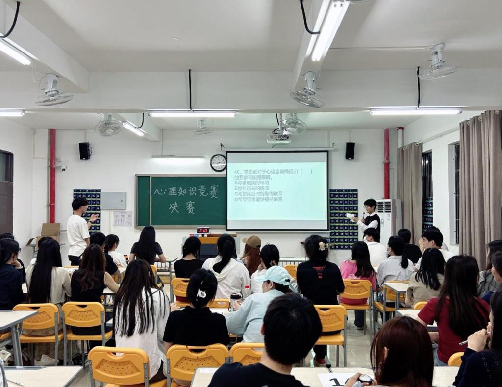 比赛中,同学们积极参与抢答,团队配合默契,现场秩序井然,不时爆发出的阵阵掌声体现了同学们对心理健康知识的兴趣与热情。参赛选手凭借扎实的心理学基础和敏捷的思维反应,充分展现大学生的青春风采。
