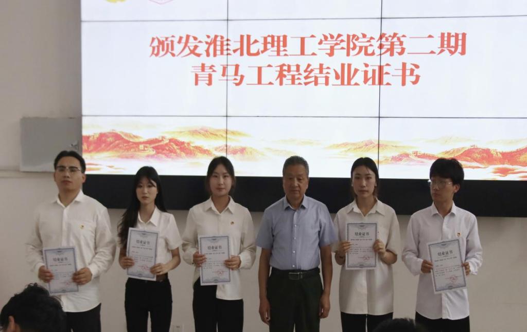党委书记朱德顺、党建办主任付金沐、学生处处长孙增响分别为第二期“青马工程”优秀学员代表颁发结业证书。