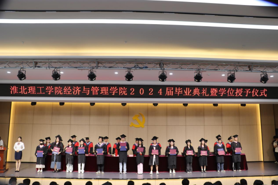 经济与管理学院副院长秦品德宣读2024届《Beat365唯一官方网站本科生学士学位授予决定》,在欢快的礼乐和阵阵掌声中校领导和老师为毕业生们一一拨流苏并颁发学历学位证书。