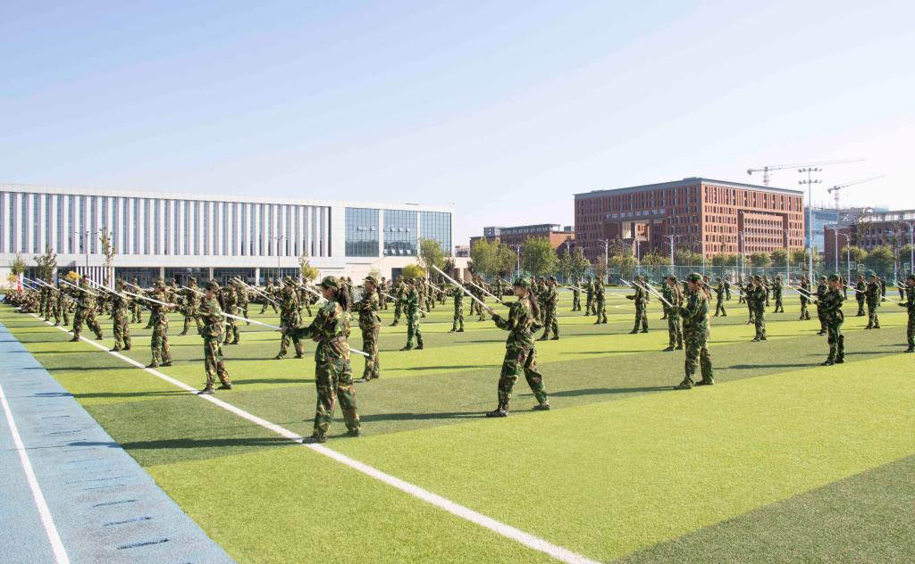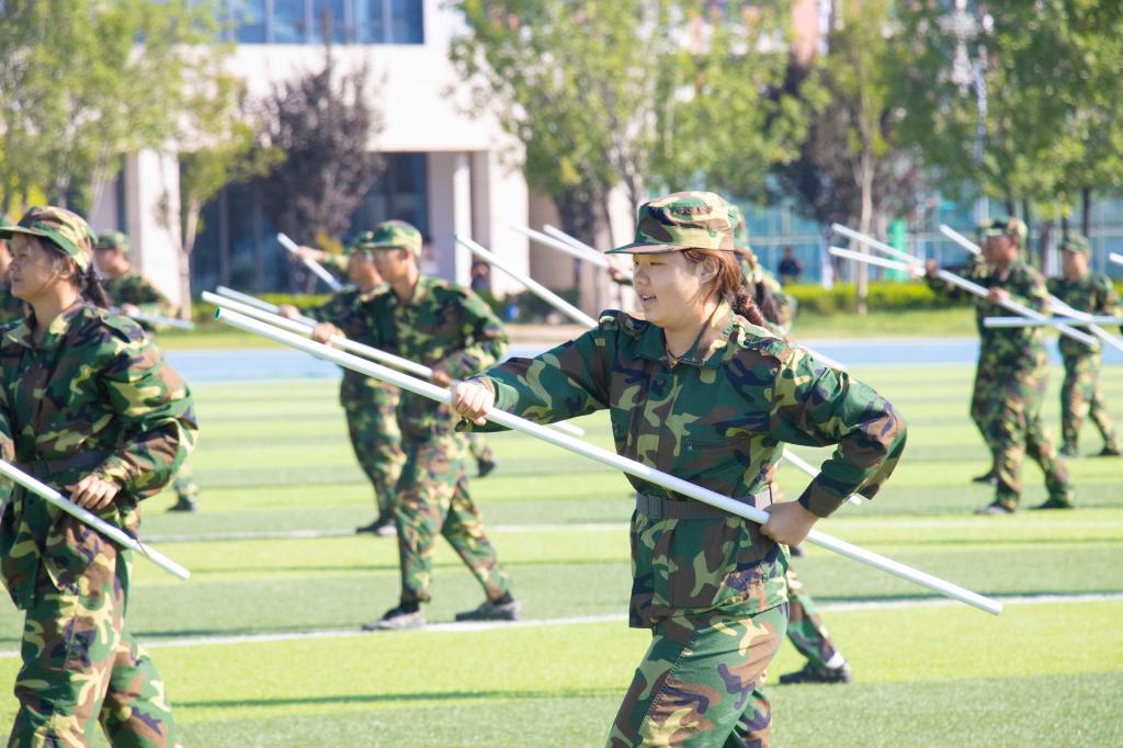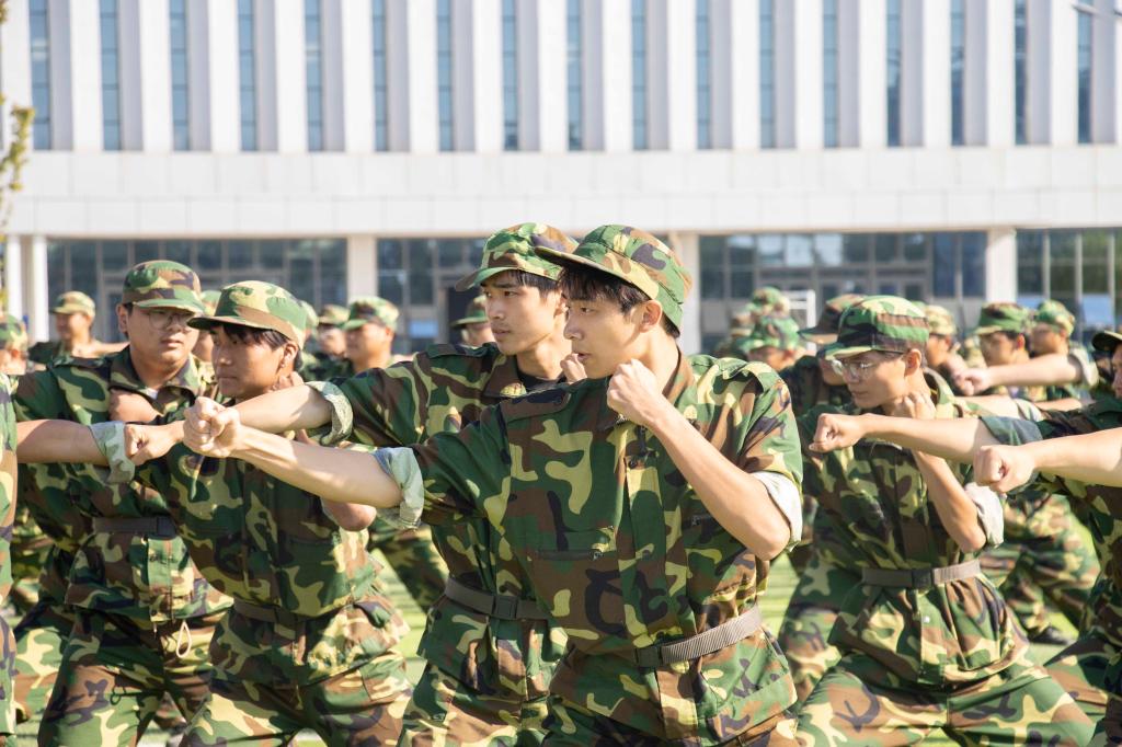 随后,军训汇报表演成为全场瞩目的焦点。各院系或班级组成的方队,在教官的指挥下,迈着整齐的步伐,喊着响亮的口号,依次通过主席台接受检阅。方队成员穿着统一的迷彩服,精神饱满,动作协调一致,他们以挺拔的身姿、坚定的眼神,向大家展示了军训的成果,从他们身上,我们看到了汗水与坚持,感受到了青春的活力与力量。在军训汇报表演的同学们中,军体拳方阵的同学们身着迷彩服,动作刚劲有力,拳风呼啸,每一招每一式都透露出军人的果敢与勇猛,这不仅是一场视觉的盛宴,更是对自我极限的挑战和超越;格斗术方阵的同学们迅速变换队形,模拟实战中的掩护、进攻、撤退等战术动作,展现了良好的战术素养和团队协作能力,他们每一个动作都精准到位,让人仿佛置身于真实的战场之中;匕首操与棍术表演方阵的同学们手持匕首或木棍,动作流畅而有力,时而如猛虎下山,时而如蛟龙出海,展现了中华武术的博大精深和军人的英勇无畏;战术方队的同学们更是将大会表演推向高潮,烟雾散出,空气中弥漫着紧张的味道,在反恐演习中,他们全副武装,手持各自的武器,翻过重重的障碍,在成功救出人质之后,战士们脸上自信从容坚毅的表情,俨然是一个个训练有素的精英。在全体同学的共同努力下,全体师生共同观看了一场盛大精彩的视觉盛宴。