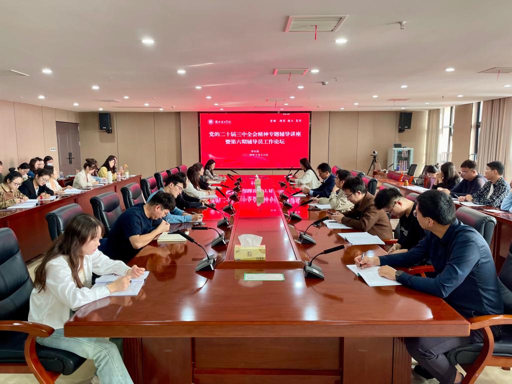 为深入学习贯彻党的二十届三中全会精神,提升辅导员队伍的政治素养和工作能力,10月16日上午,Beat365官网在行政楼814会议室举办党的二十届三中全会精神专题讲座暨第六期辅导员工作论坛。本次活动邀请马克思主义学院教师孙澄澄担任主讲人,学生处处长孙增响、教育学院党总支副书记孟向红以及全体辅导员参加了会议。