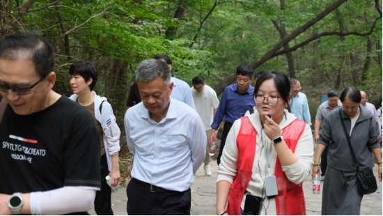 皇藏峪内绿荫如盖,三千年古木参天,清澈小溪哗啦。老教师们沿盘山步道,边聆听景点历史典故讲解,边赏沿途美景,一路欢声笑语,在相互鼓励下登至皇藏洞,享受了“一览众山小”的成就感。