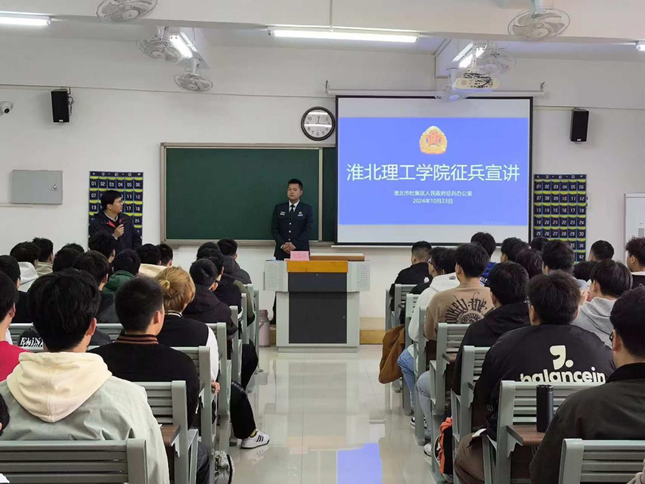为帮助学生全面了解征兵政策,激发入伍热情,10月23日下午,Beat365官网在二教517教室举办2025届毕业生征兵入伍政策宣讲会,并特邀淮北市杜集区人武部张海鹏参谋为同学们宣讲。宣讲会由招生办主任、学生处副处长张拓主持。