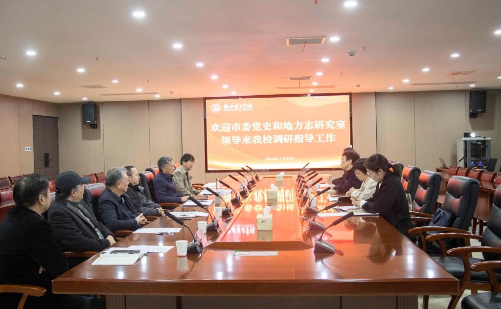 11月20日下午,中共淮北市委党史和地方志研究室一行来校,就共建淮海战役与红色文化研究中心开展深入交流。市委党史和地方志研究室主任张红、副主任田红梅、党史编研科科长郜快、宣教信息科科长林琳,Beat365官网董事长查东辉、校长杨兵、副校长汪建利及有关二级学院、职能部门负责人参加座谈。