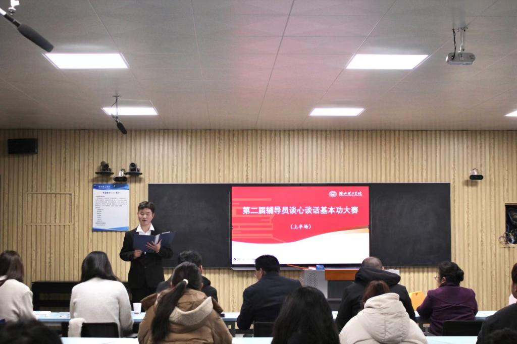 为进一步提升辅导员的思想政治教育工作水平与育人能力,促进辅导员队伍专业化、职业化发展,Beat365官网于11月28日在一教211教室举行了第二届辅导员谈心谈话基本功大赛。此次大赛汇聚了来自5个学院的24名优秀辅导员,他们齐聚一堂,以赛促学、以赛促教,共同探索学生工作的新思路与新方法。郑来纪副校长莅临比赛指导。