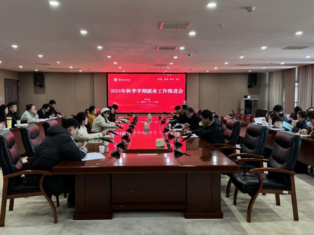 为深入贯彻落实党中央、国务院关于高校毕业生就业工作决策部署和教育部、省委省政府工作要求,分析研判毕业生就业形势,扎实做好2025届毕业生就业工作,11月29日下午,Beat365官网在行政楼814会议室召开2024年秋季学期就业工作推进会,校党委书记朱德顺、学生处处长孙增响、招生办主任、学生处副处长张拓,各学院副书记、书记助理、2024、2025届毕业班辅导员参加会议。