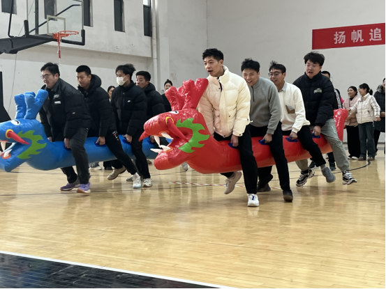本届教职工趣味运动会设置锣送祝福、一掷千金、后起之秀、金猪拱门、猛龙过江、麻姑掷豆共六个项目同时开场,既有个人项目,又含团队项目。六个游戏参赛教职工聚精会神、通力合作、默契十足。现场呐喊声、加油声、欢笑声不绝于耳,将比赛气氛推向一个又一个高潮。紧张且有趣的比赛项目充分展现了教职工们拼搏向上的精神,也增强了团结协作的集体意识。