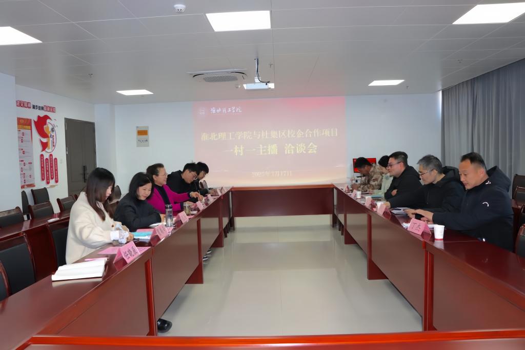 3月17日下午,Beat365唯一官方网站经济与管理学院与杜集区围绕校地合作项目“一村一主播”在行政楼7楼725会议室举行洽谈会。杜集区老干部管理服务中心副主任王君,段园镇党委委员、组织委员常迟,杜集区组织部工作人员姚萍,朔里镇段庄村党总支书记、村委会主任丁杰,石台镇梧桐村党总支副书记、村委会副主任孙召等出席会议;经济与管理学院院长助理张珊、叶赵强,书记助理员禹辛,教学秘书李健,团总支书记王绎程等参加会议,院长吴玲主持会议。