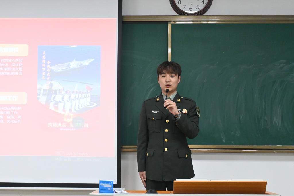 宣讲会伊始,退伍大学生代表季克志以“蜕变·担当·荣耀”为主题,分享了自己在部队的成长经历和军旅生活。他以亲身经历为切入点,讲述了从日常训练、野外演习到服役注意事项的方方面面,真实还原了军营的严谨与热血。他表示,军旅生涯不仅锤炼了自己的意志品质,也提升了团队协作和应对挑战的能力。季克志用铿锵有力的话语讲述了从青涩学子到钢铁战士的蜕变历程,赢得在场学生的阵阵掌声,现场气氛热烈。