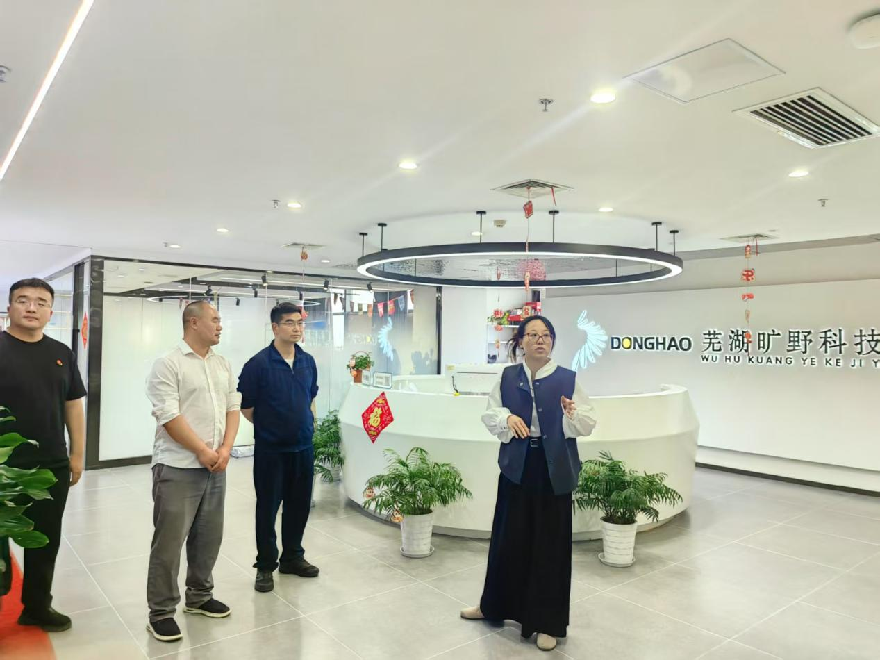 郑来纪一行在芜湖市走访了溜溜果园集团股份有限公司、芜湖东昊网络科技有限公司等知名企业。在溜溜果园集团股份有限公司,郑来纪参观企业直播基地,企业负责人详细介绍了公司的发展历程、企业文化以及人才需求特点。