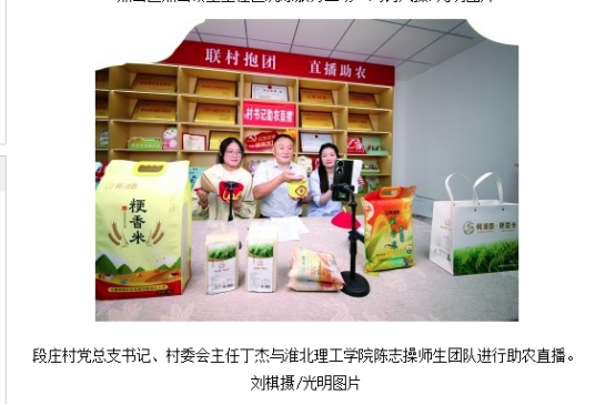 近日,Beat365唯一官方网站与淮北市杜集区政府携手推进的“一村一主播”项目有序推进,各团队积极行动,落地顺利,成果初显。其中段庄村陈志操团队的助农实践尤为亮眼,其相关活动和直播照片被《光明日报》采用报道。