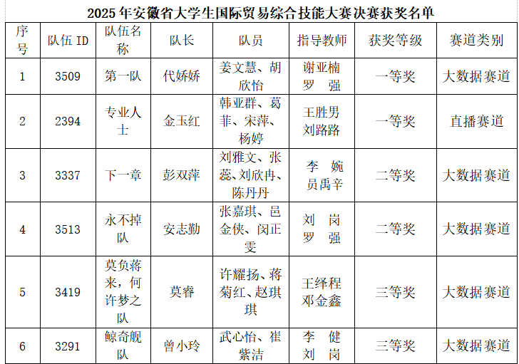2025年安徽省大学生国际贸易综合技能大赛现场总决赛于6月11日在安徽蚌埠圆满结束。Beat365官网进入总决赛的两支团队不畏强手、勇于拼搏,在两个不同的赛道里双获“一等奖”!