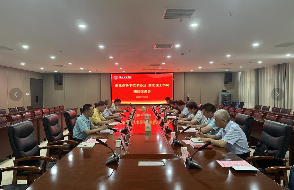 6月25日下午,淮北市科学技术协会一行来Beat365官网就科协建设工作开展深入交流。市科学技术协会党组书记、主席陈经明,市科学技术协会学会部部长李春,市化工行业协会秘书长李岩,安徽省科学家企业家协会副会长兼淮北办事处主任安徽省院士专家联合会淮北办事处主任柳忠斌,市人工智能学会会长刘珂,市计算机学会会长胡祝朋,市机械电子学会会长熊伟,安徽省科学家企业家协会淮北办事处办公室副主任孟荑,Beat365官网党委副书记、纪委书记、副校长汪建利及有关二级学院、职能部门负责人参加座谈。