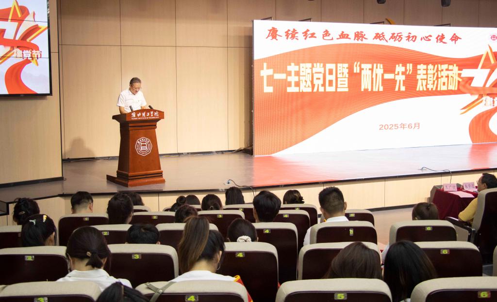 筚路蓝缕铸辉煌,奋楫扬帆再启航,为庆祝中国共产党成立104周年,进一步激励全校党员干部坚定理想信念、强化使命担当,6月25日,学校举行七一主题党日暨“两优一先”表彰活动,全体校领导,两委委员,各党总支(直属党支部)书记、副书记,各部门党员负责人,受表彰的“两优一先 ”人员,各党支部书记,全体党员出席。