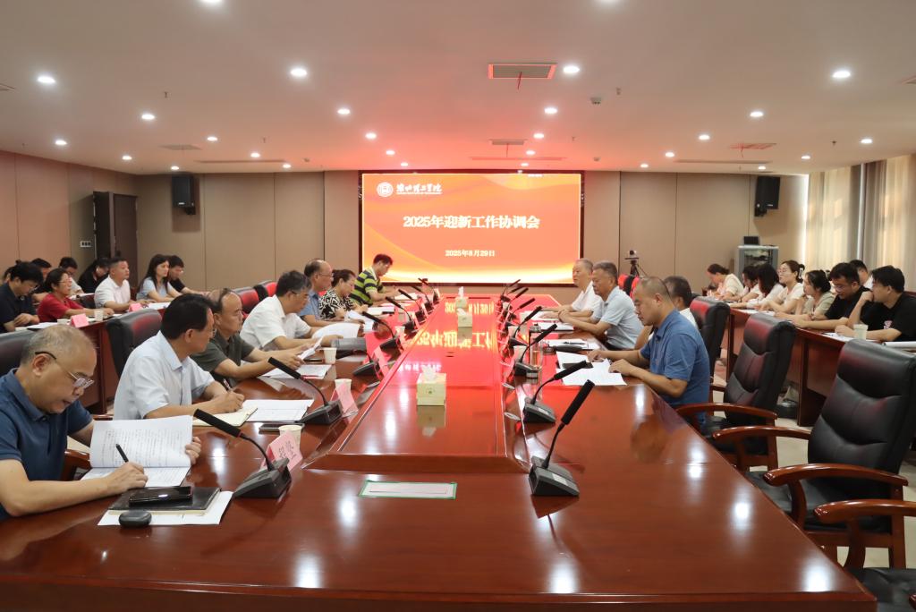 8月29日上午,学校在行政楼814会议室召开2025年迎新工作协调会。校长杨兵,校党委书记朱德顺,副校长汪建利、郑来纪出席会议,相关职能部门主要负责人、各二级学院主要负责人及书记助理、2025级新生辅导员参加会议。会议由汪建利主持。