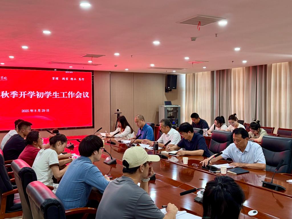 8月29日上午,学校在行政楼814会议室召开2025年秋季开学初学生工作会议,校党委书记朱德顺、副校长郑来纪,学生处、招生办、团委负责人,各二级学院党总支副书记、书记助理、团总支书记及全体新生班级辅导员参加会议。会议由朱德顺主持。