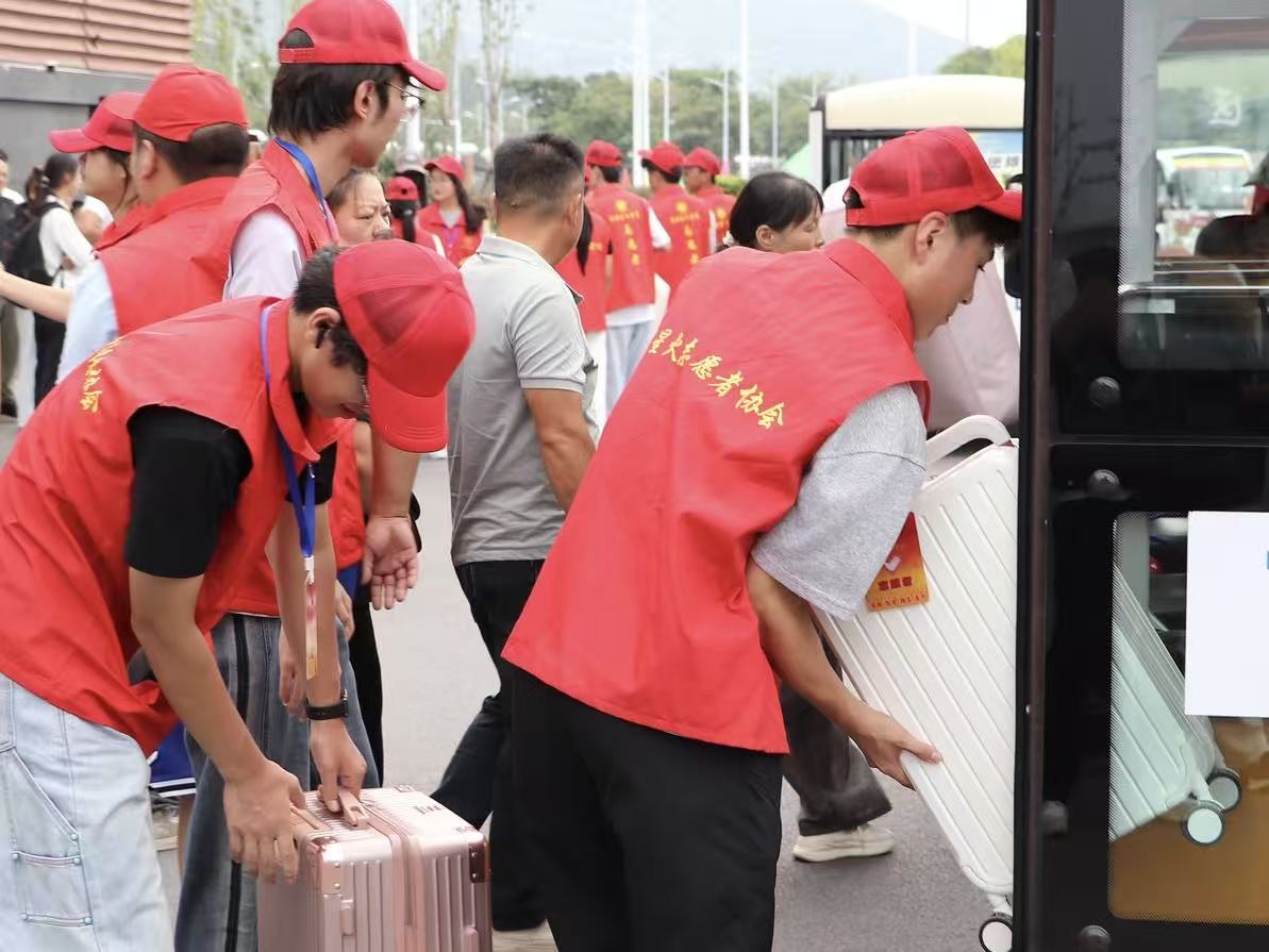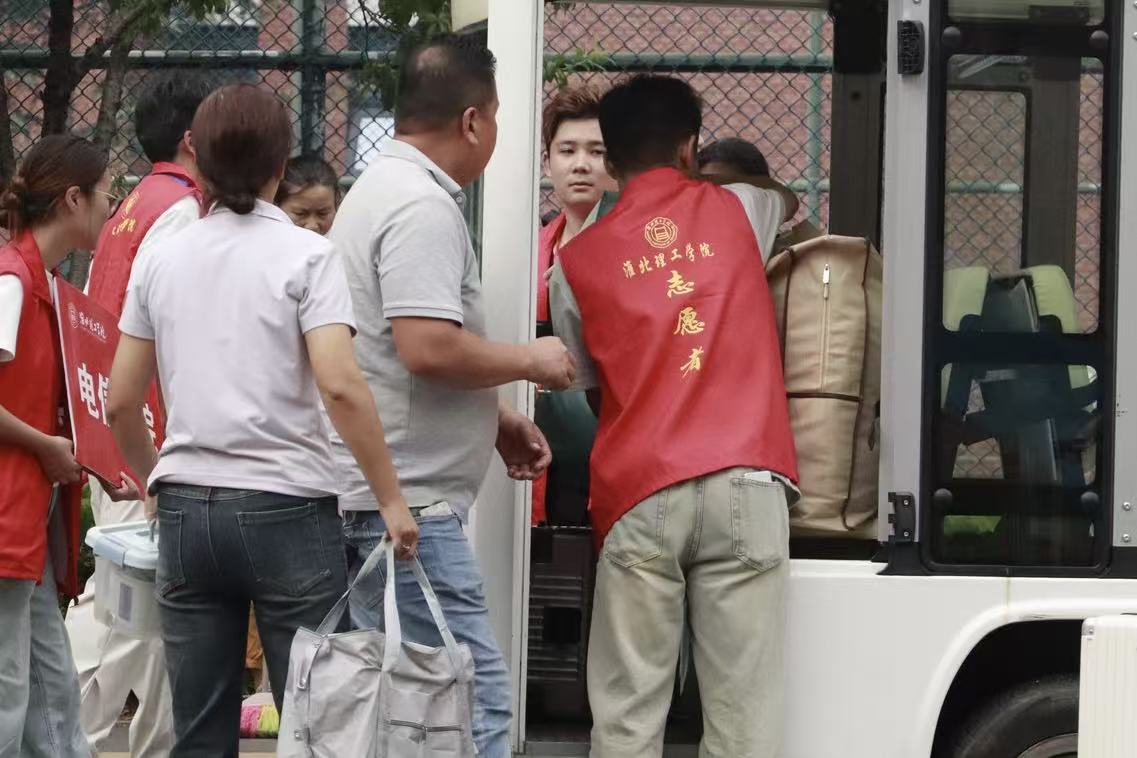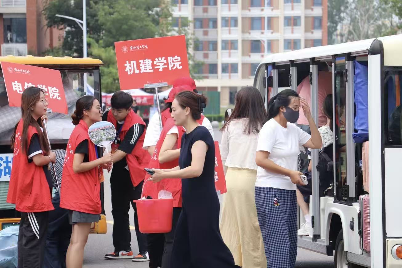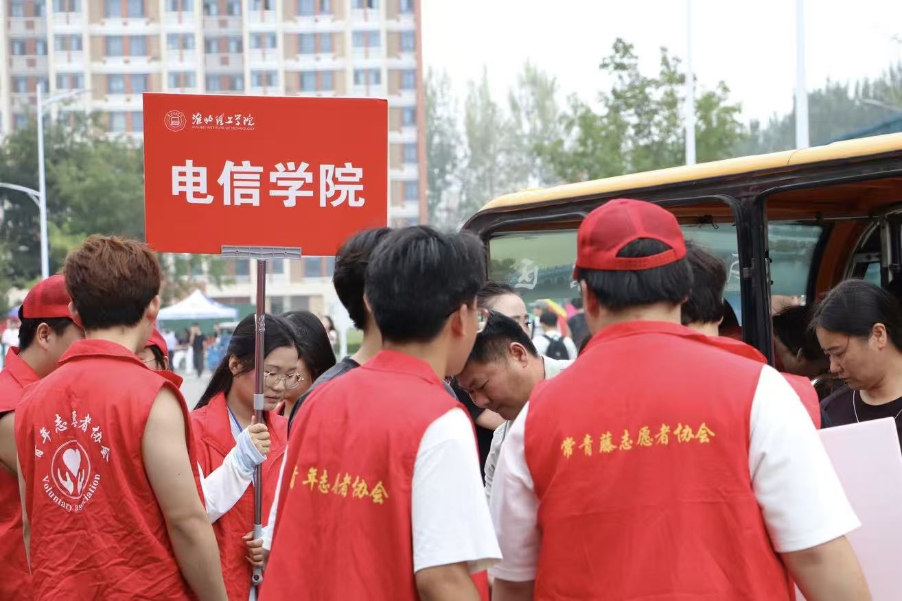 当清晨的第一缕阳光还未初现的时候,志愿者们已身着红马甲,精神抖擞地出现在淮北火车站、汽车站。在老师的指导下,他们迅速搭建起迎新站点,举着迎新标牌,踮脚在人群中寻找新生的身影,耐心守候着每一位远道而来的新生。当新生及家长的身影出现在视线中,志愿者们便迅速行动起来,有序引导,遇到行李繁多的新生,志愿者们主动上前帮忙搬运,引导至迎新专车,面对家长的咨询,他们耐心讲解校园周边交通与生活设施,确保每位新生都能顺利登上前往学校的专车,站点的每一处,都洋溢着志愿者们热情的笑容与周到的服务。