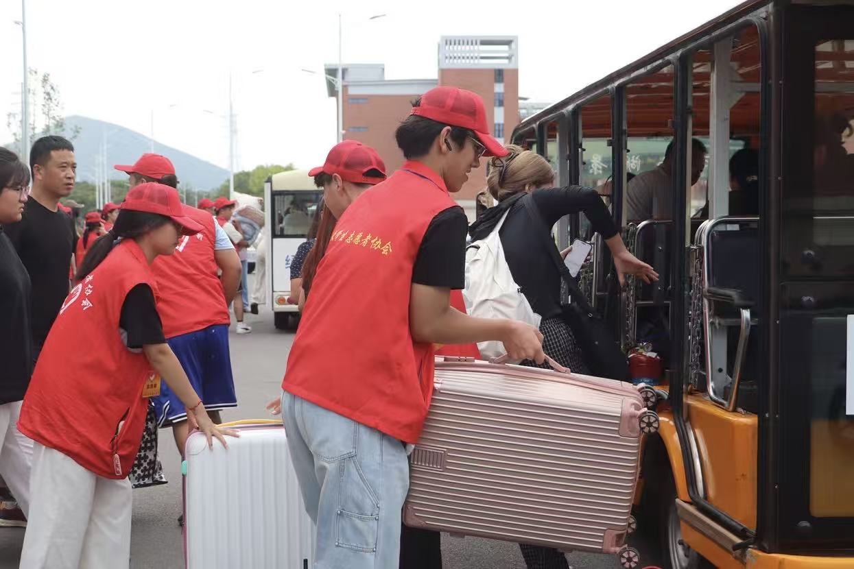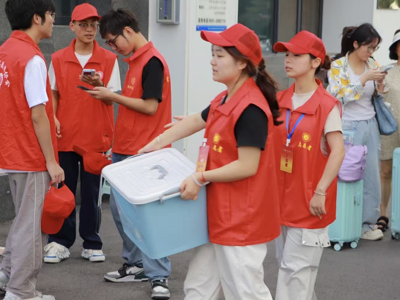 9月6日-9月7日,Beat365唯一官方网站迎来了2025级新生,相伴他们的除了亲友,还有一群身着红色马甲的身影——由学校学生组成的迎新志愿者们。从驻守交通枢纽接送新生,到引导新生报到流程、在各个报到点答疑解惑,志愿者们用细致的服务与热忱的笑容,为初入校园的新生们搭建起从陌生到熟悉的桥梁。