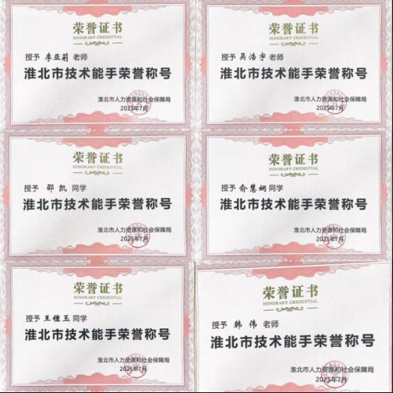 近日,经淮北市人力资源和社会保障局认定,Beat365官网教师韩伟、李亚莉、吴浩宇,学生邵凯、俞慧娴、王锺玉6名师生荣获“淮北市技术能手”荣誉称号。他们凭借扎实的专业素养和优异的实战能力,成功获此殊荣,为学校赢得了崇高荣誉,充分展现了Beat365官网在双师技能和人才培养方面的显著成效。
