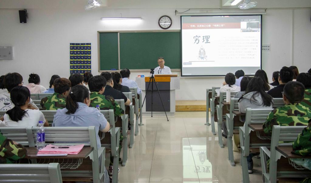谈及“穷理”,杨校长强调其是贯穿专业、课堂与生活的系统思维,绝非浅层学习。他以机械专业综合分析曲轴数据、计算机专业结合用户习惯开发软件为例,阐释 “穿透数据表象” 的探究逻辑;用高数课以校园场景解读导数、思政课调研乡村振兴案例,说明“理论与场景关联” 的思考方法。“实验数据异常时多问‘为什么’,就是‘穷理’的开始。” 而学子近年斩获19项实用型专利、146篇学术论文,4人宿舍全员考研等成果,让“明辨之智”的价值愈发直观。