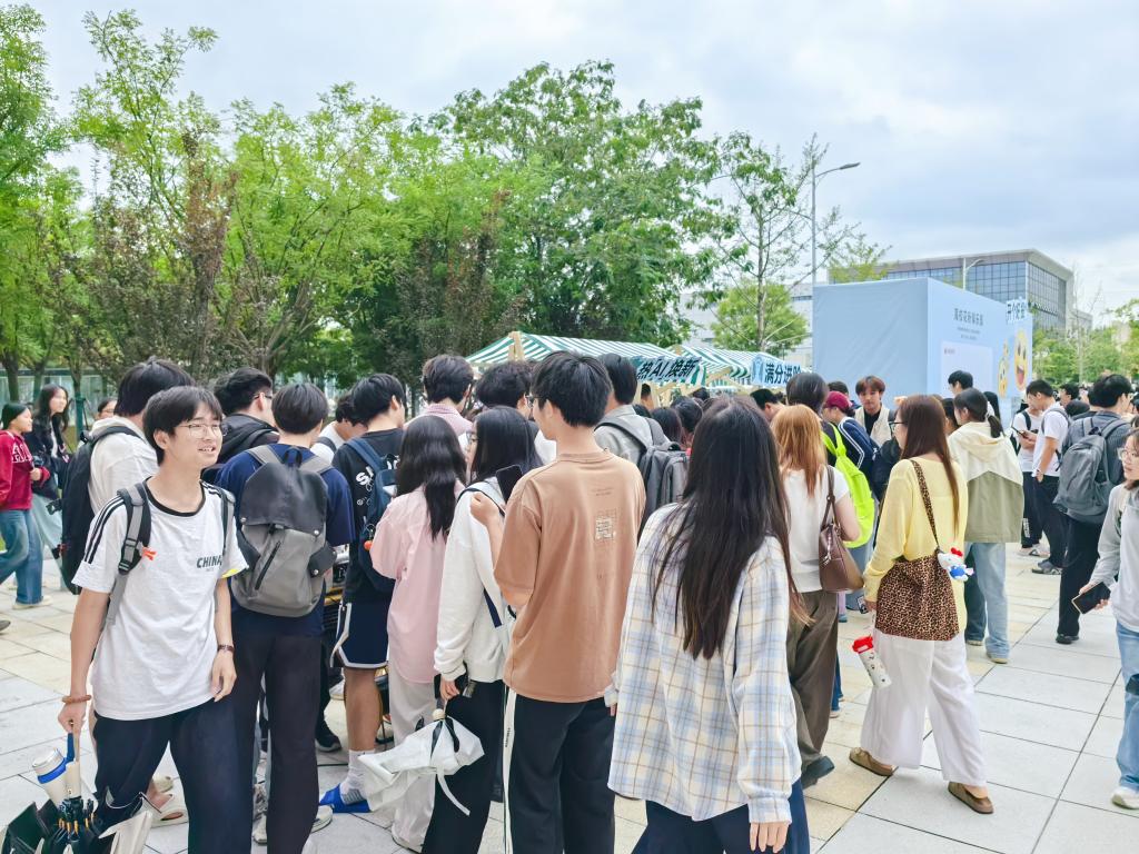上午10点,开学市集在校园热闹开启,设立了三大互动体验区:“热‘AI’焕新-华为服务站”为同学们提供设备检测、清洁保养和免费贴膜等贴心服务;“满分进阶-鸿蒙AI体验区”让大家亲身感受鸿蒙系统的智慧功能,如隔空传送、一键生成PPT、AI人像练习等,切实体验人工智能为学习与生活带来的便捷;“开个好‘投’-花粉纳新+游戏互动区”则通过轻松有趣的互动游戏和纳新宣传,增强参与感和归属感。同学们完成所有互动并添加企业微信后,还可获得透卡、贴纸等精美礼品,并参与校园地标与文化符号打卡活动,现场气氛热烈、欢笑不断。